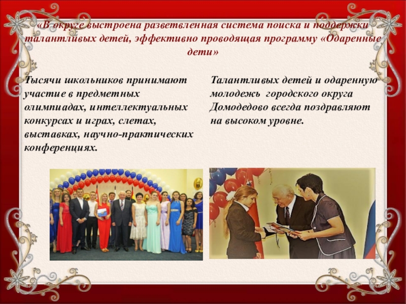 Талантливых детей и одаренную молодежь городского округа Домодедово всегда поздравляют на высоком уровне.