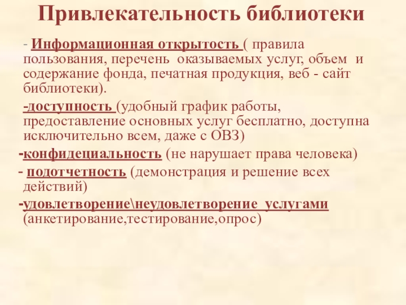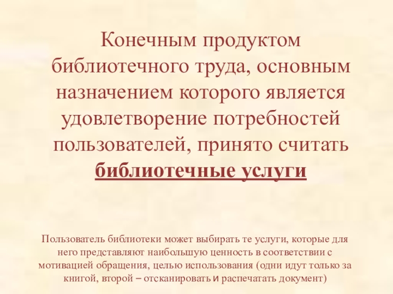 Пользователь библиотеки может выбирать те услуги, которые для него представляют наибольшую ценность в соответствии с мотивацией обращения, целью использования (одни идут только за книгой, второй – отсканировать и распечатать документ)