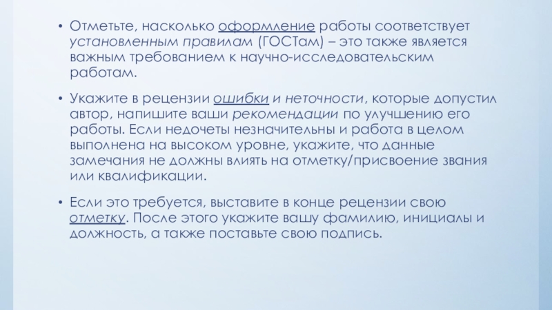 9.Правильность оформления работы (структурирование текста по пунктам и подпунктам, его изложение в соответствии с выбранным планом, нумерация страниц, оформление цитат и ссылок, библиографии, титульного листа и т.п.)