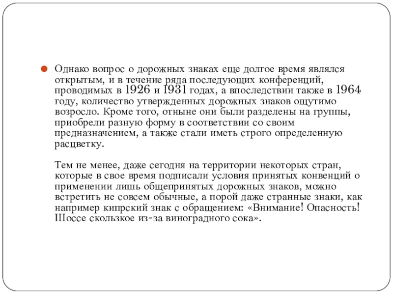 Слайд 6Однако вопрос о дорожных знаках еще долгое время являлся открытым, и