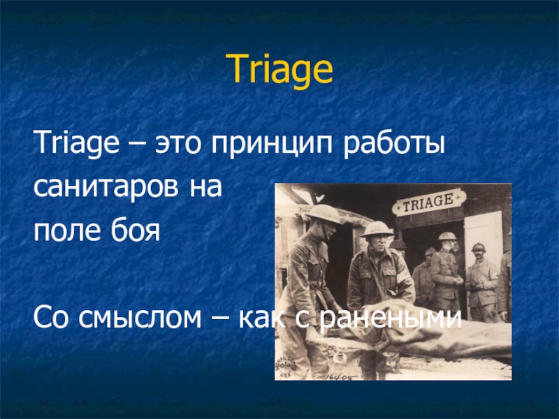 Triage Triage – это принцип работысанитаров наполе бояСо смыслом – как с ранеными