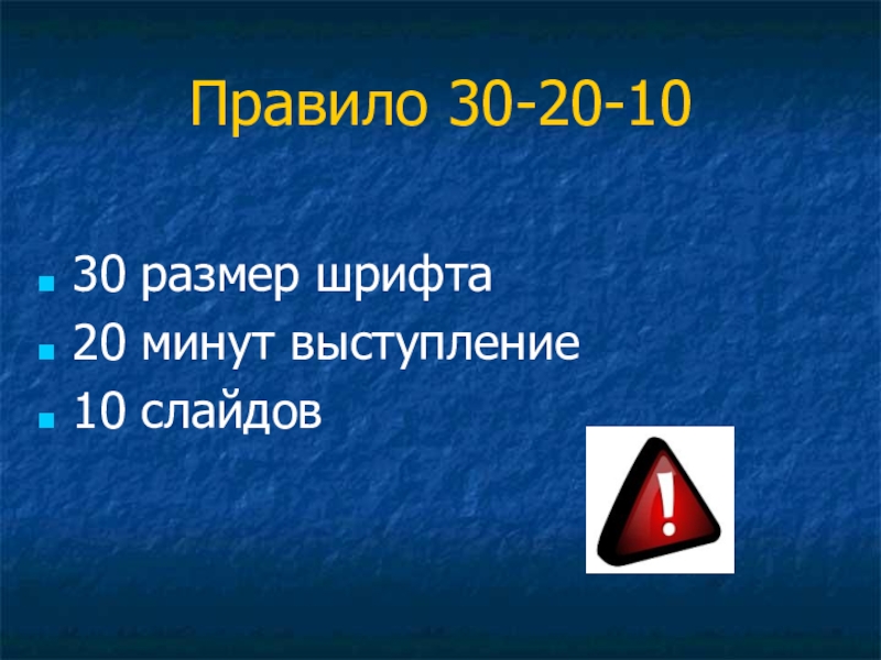 Правило 30-20-1030 размер шрифта20 минут выступление10 слайдов