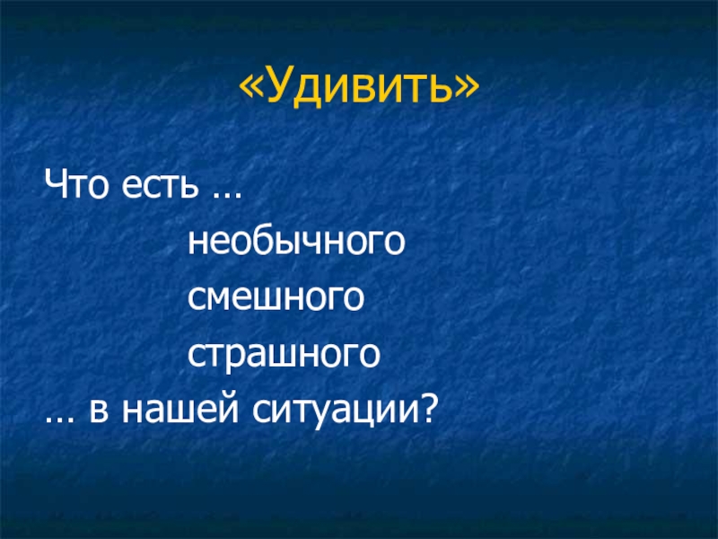 «Удивить»Что есть …				необычного				смешного				страшного… в нашей ситуации?