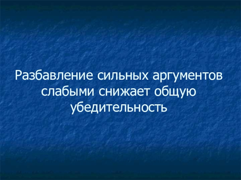 Слайд 29Разбавление сильных аргументов слабыми снижает общую убедительность
