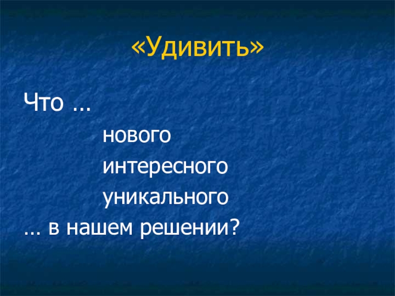 «Удивить»Что …				нового				интересного				уникального… в нашем решении?