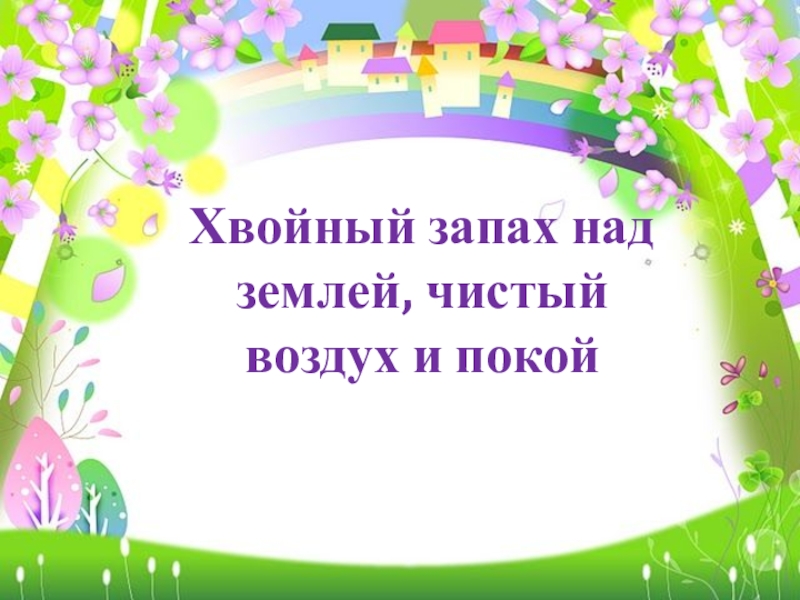 Слайд 47Хвойный запах над землей, чистый воздух и покой