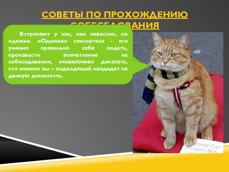 Встречают у нас, как известно, по одежке. «Одежка» соискателя - это умение правильно себя подать, произвести впечатление на собеседовании, ненавязчиво доказать, что именно вы – подходящий кандидат на данную должность.