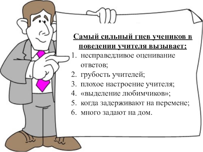 Слайд 9Самый сильный гнев учеников в поведении учителя вызывает: