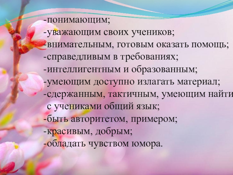 сдержанным, тактичным, умеющим найти с учениками общий язык;