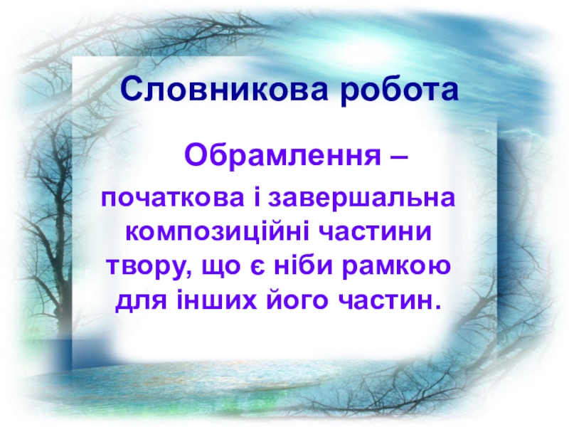 Словникова робота    Обрамлення –  початкова і завершальна композиційні частини твору, що є ніби