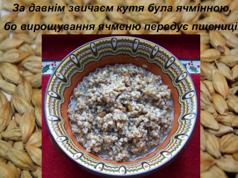 Слайд 4За давнім звичаєм кутя була ячмінною,
