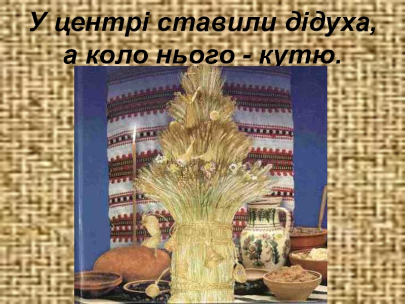Слайд 7У центрі ставили дідуха, а коло нього - кутю.