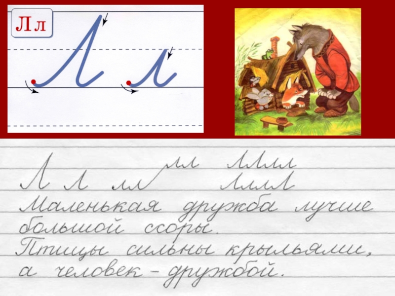 Слова на картинке: лиса, волк, лес, лавка, лягушка, лапти.