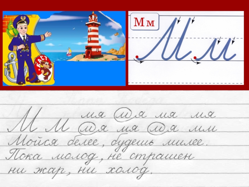 Слова на картинке: море, маяк, смотритель, моряк, молодость, мартышка.