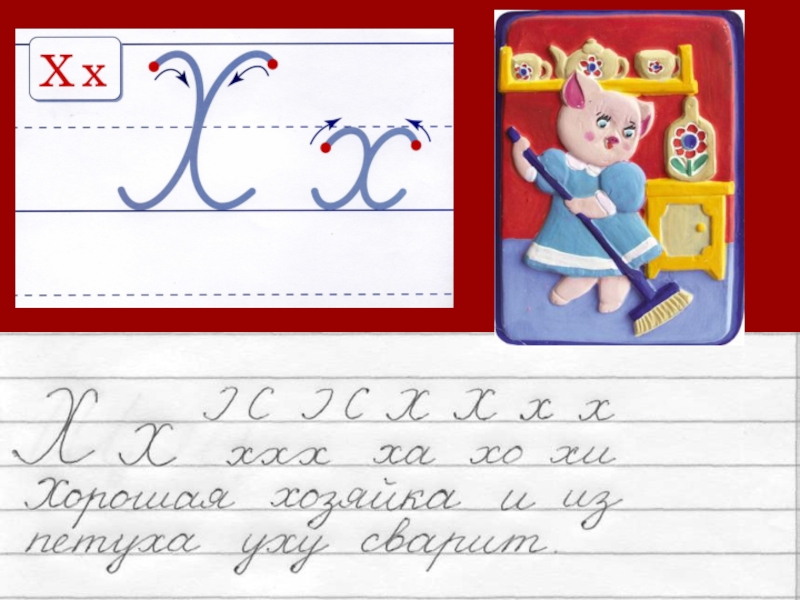 Слова на картинке: хозяюшка, Хрюшка, хорошо, хлеб.