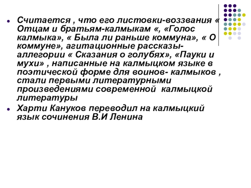 Слайд 3Считается , что его листовки-воззвания « Отцам и братьям-калмыкам «, «Голос
