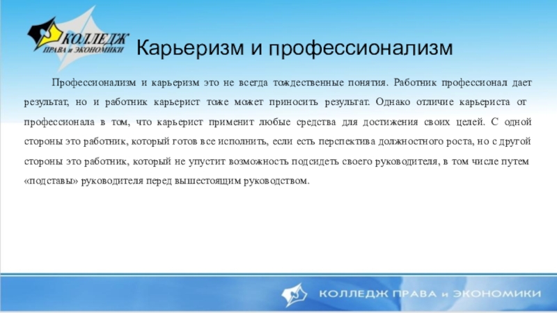 Профессионализм и карьеризм это не всегда тождественные понятия. Работник