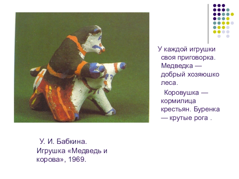 У. И. Бабкина. Игрушка «Медведь и корова», 1969.