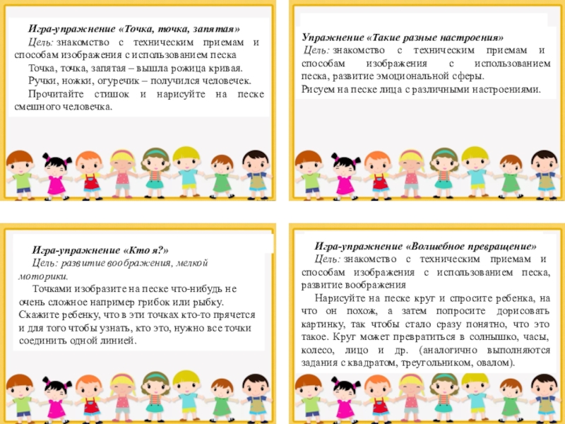 Цель: знакомство с техническим приемам и способам изображения с использованием песка, развитие эмоциональной сферы.