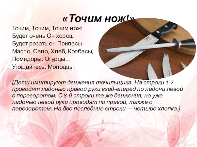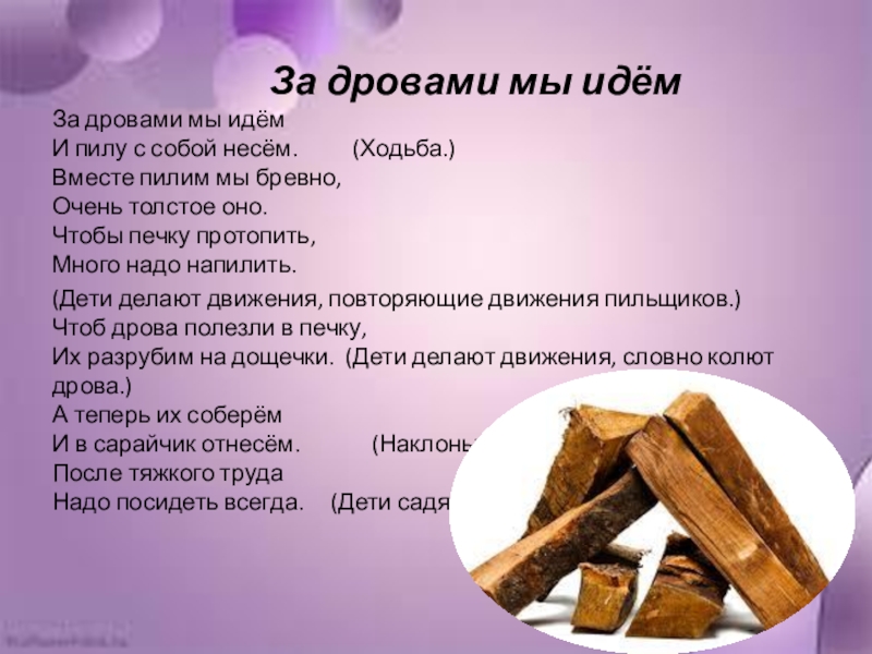 Их разрубим на дощечки. (Дети делают движения, словно колют дрова.)