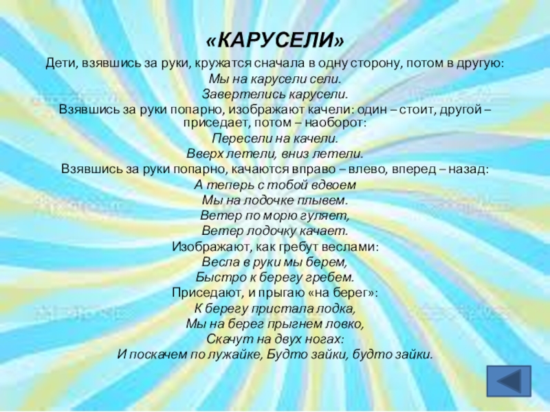 Дети, взявшись за руки, кружатся сначала в одну сторону, потом в