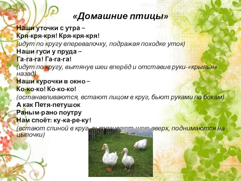 Взявшись за руки попарно, изображают качели: один – стоит, другой – приседает, потом – наоборот: