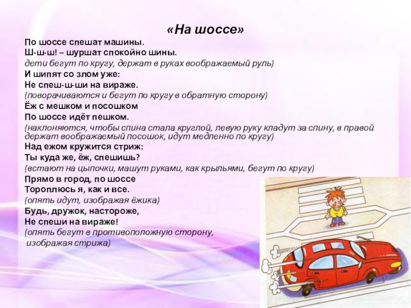 (останавливаются, нажимают на воображаемую педаль правой ногой, бегут по кругу в противоположную сторону)