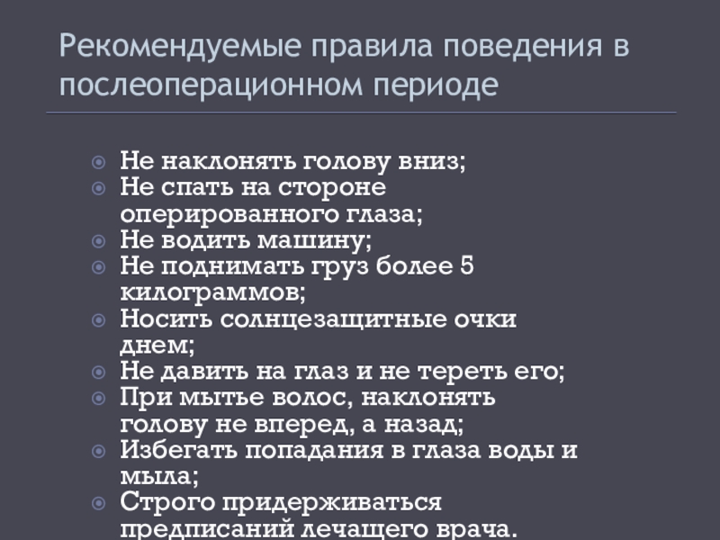 Слайд 36Рекомендуемые правила поведения в послеоперационном периоде