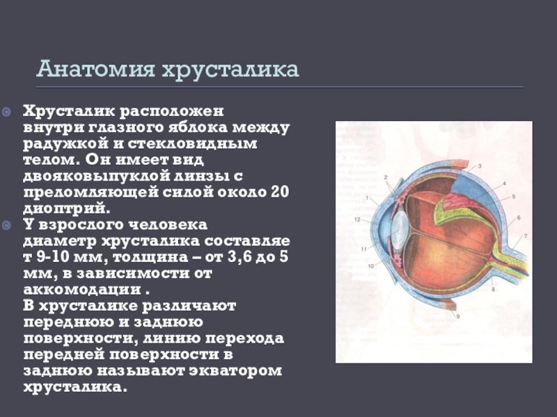 Слайд 5Анатомия хрусталика