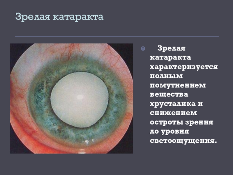 Слайд 18Зрелая катаракта