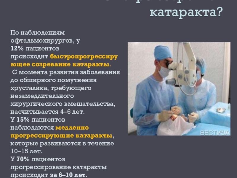 Слайд 15Как быстро созревает катаракта?
