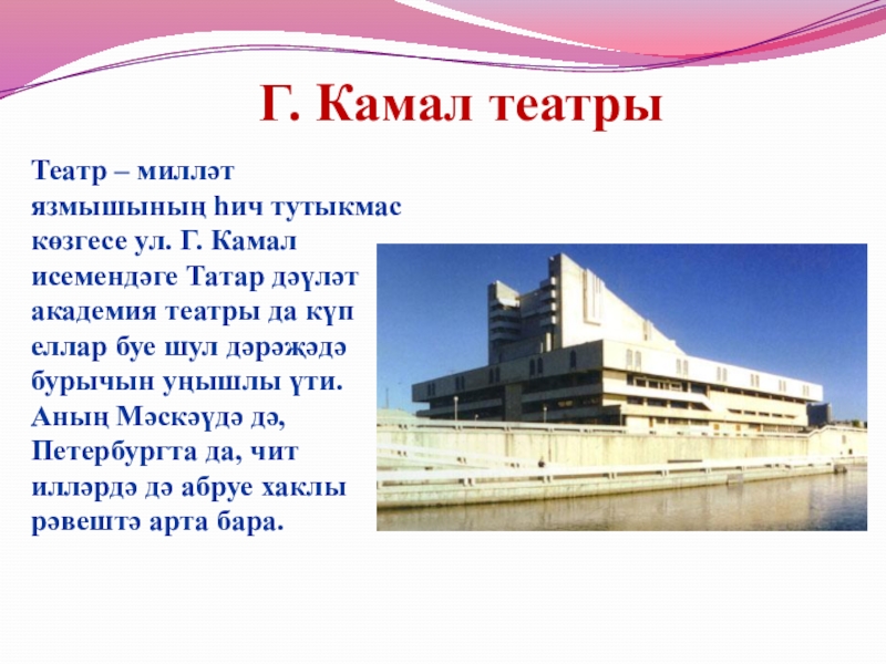 Г. Камал театрыТеатр – милләт язмышының һич тутыкмас көзгесе ул. Г. Камал исемендәге Татар дәүләт академия театры