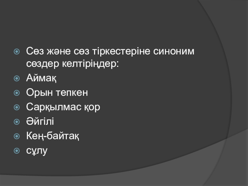 Сөз және сөз тіркестеріне синоним сөздер келтіріңдер: