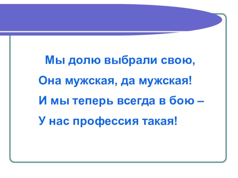 Мы долю выбрали свою,   Она мужская, да мужская!   И