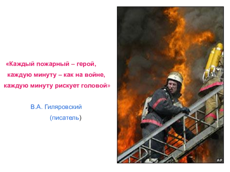 «Каждый пожарный – герой,  каждую минуту – как на войне, каждую минуту рискует головой»