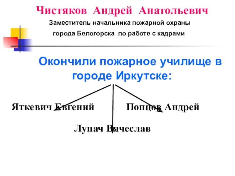 Чистяков Андрей Анатольевич            Заместитель начальника пожарной