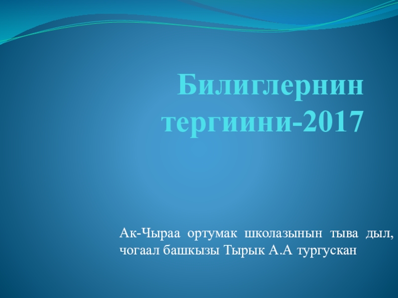 Билиглернин тергиини-2017Ак-Чыраа ортумак школазынын тыва дыл, чогаал башкызы Тырык А.А тургускан