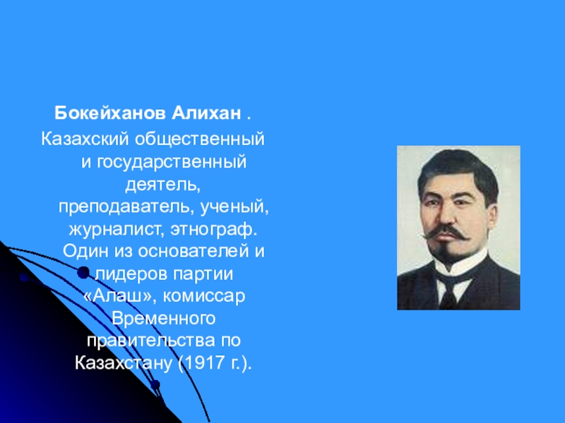 Казахский общественный и государственный деятель, преподаватель, ученый, журналист, этнограф.