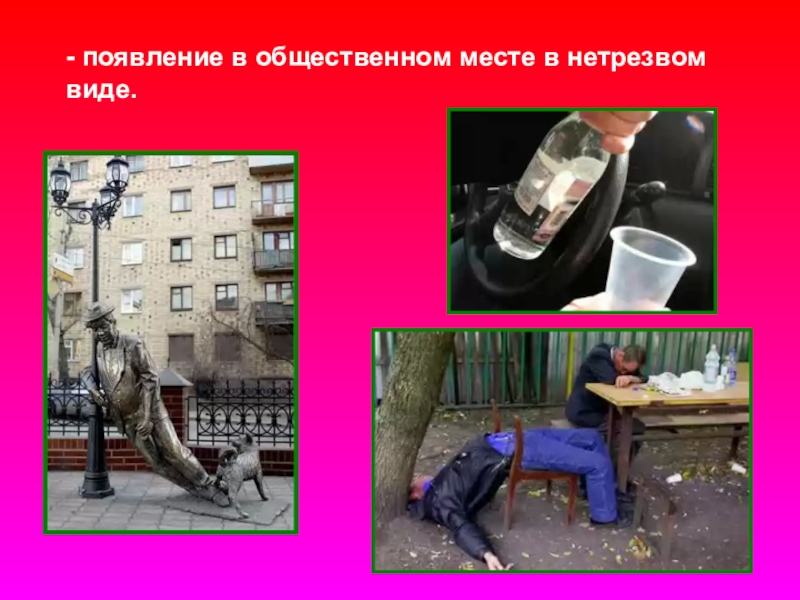 Слайд 20- появление в общественном месте в нетрезвом виде.