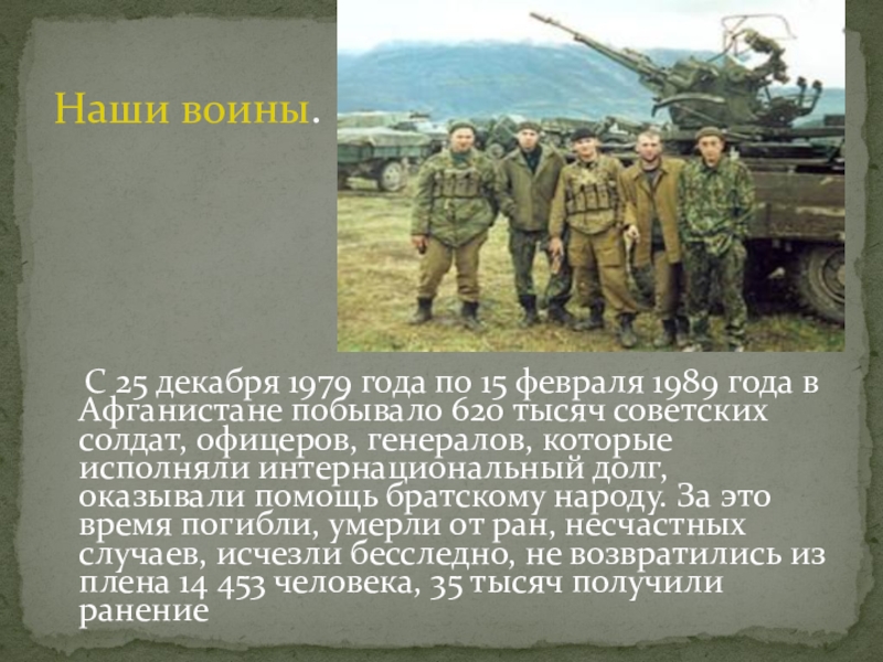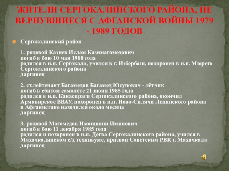 ЖИТЕЛИ СЕРГОКАЛИНСКОГО РАЙОНА, НЕ ВЕРНУВШИЕСЯ С АФГАНСКОЙ ВОЙНЫ 1979 - 1989 ГОДОВ