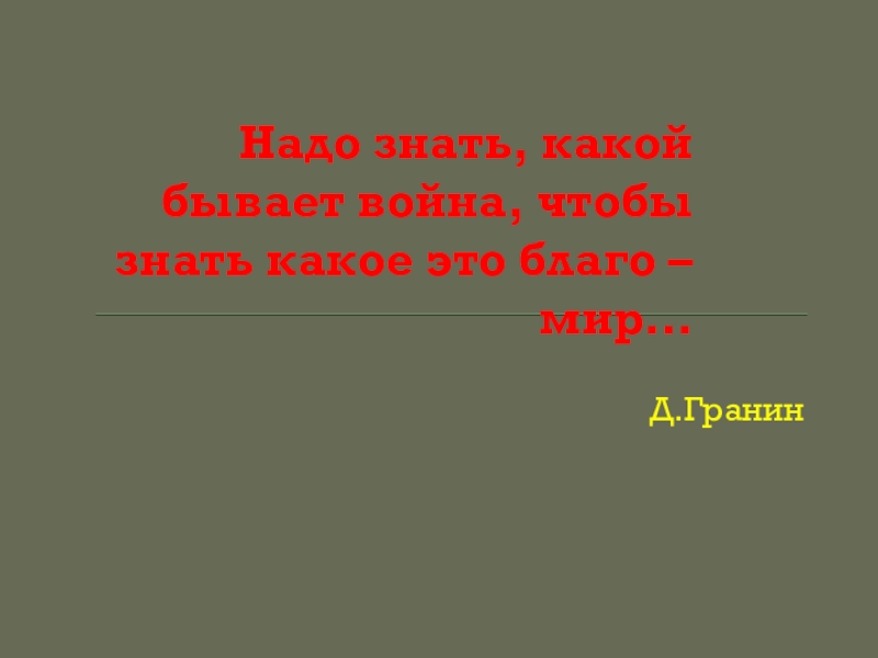 Слайд 2Надо знать, какой бывает война, чтобы знать какое это благо –