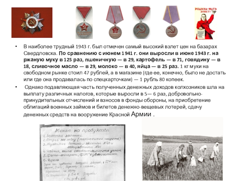 Слайд 17В наиболее трудный 1943 г. был отмечен самый высокий взлет цен