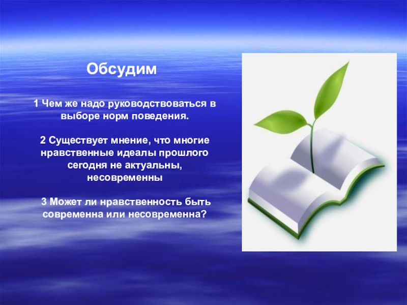 Обсудим 1 Чем же надо руководствоваться в выборе норм поведения.2