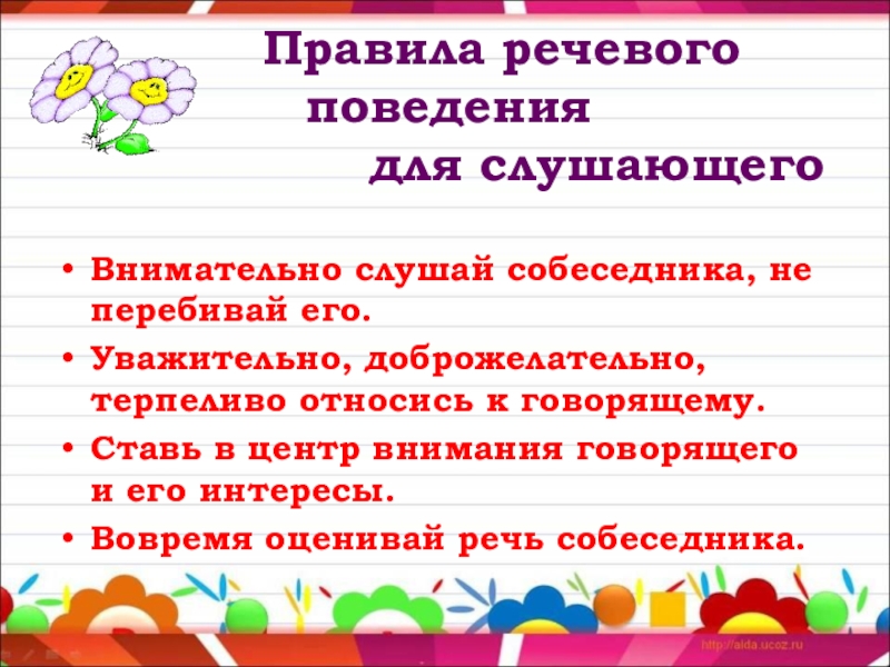 Уважительно, доброжелательно, терпеливо относись к говорящему.