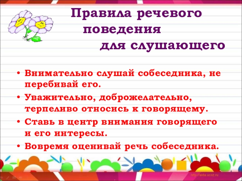 Уважительно, доброжелательно, терпеливо относись к говорящему.