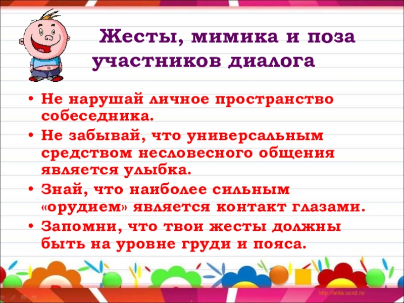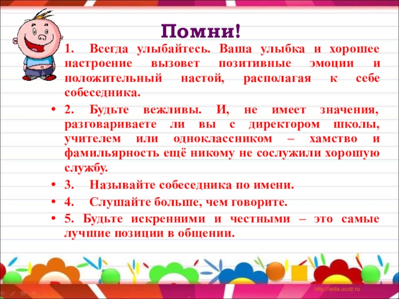 Проявляй уважительность, доброжелательность к адресату речи.