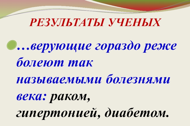 …верующие гораздо реже болеют так называемыми болезнями века: раком, гипертонией,