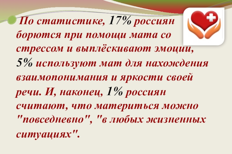 Слайд 4 По статистике, 17% россиян борются при помощи мата со стрессом