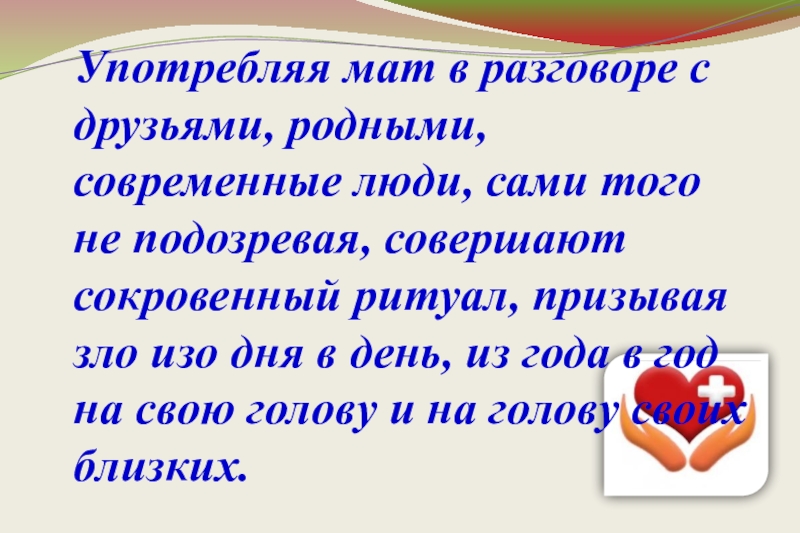 Слайд 10Употребляя мат в разговоре с друзьями, родными, современные люди, сами того
