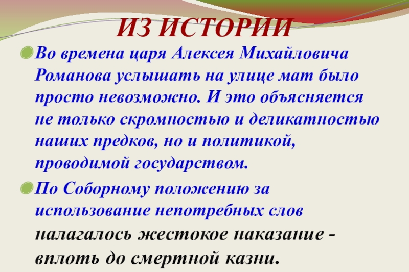 По Соборному положению за использование непотребных слов налагалось жестокое наказание - вплоть до смертной казни.